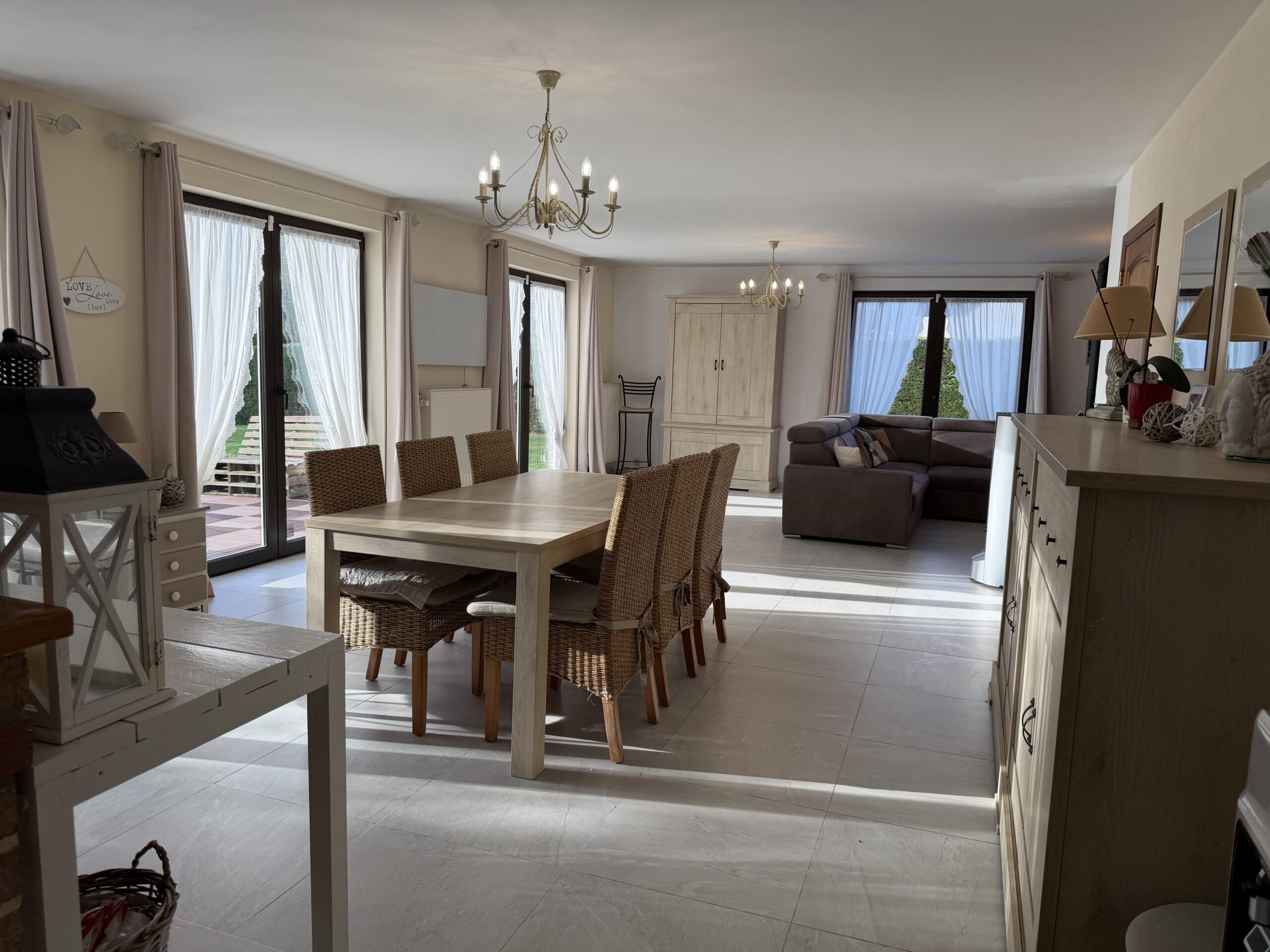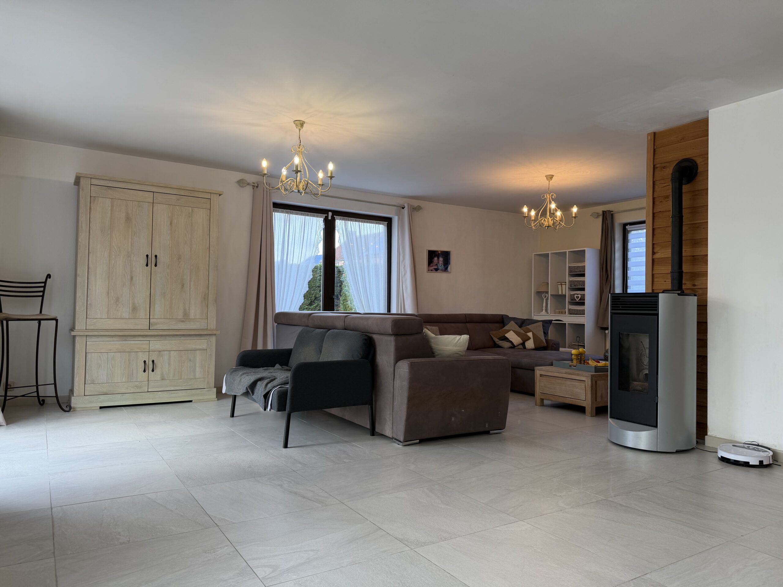 • Spacieux séjour avec salon cosy agrémenté d’un poêle à pellets