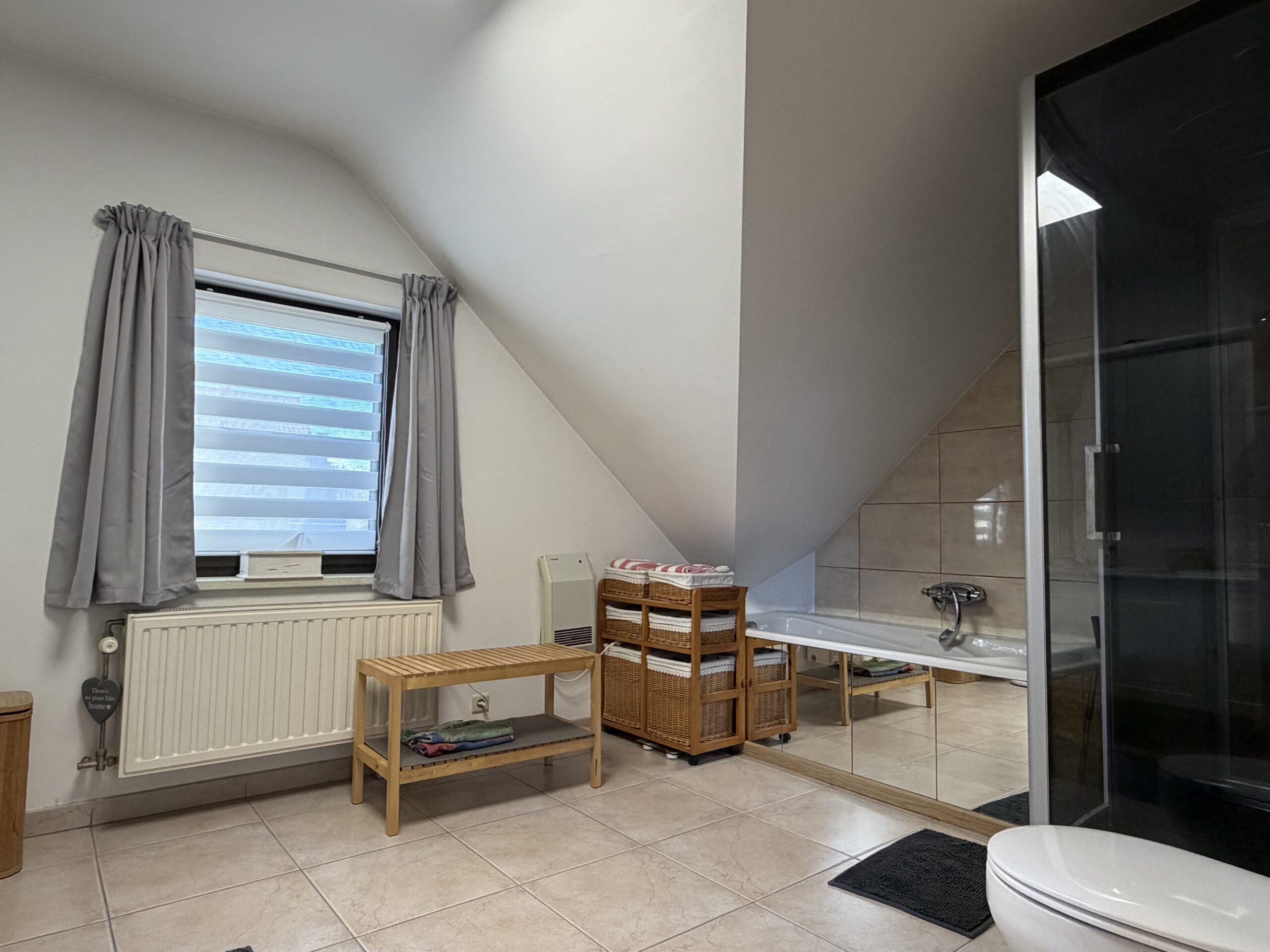 • Salle de bain avec baignoire et douche