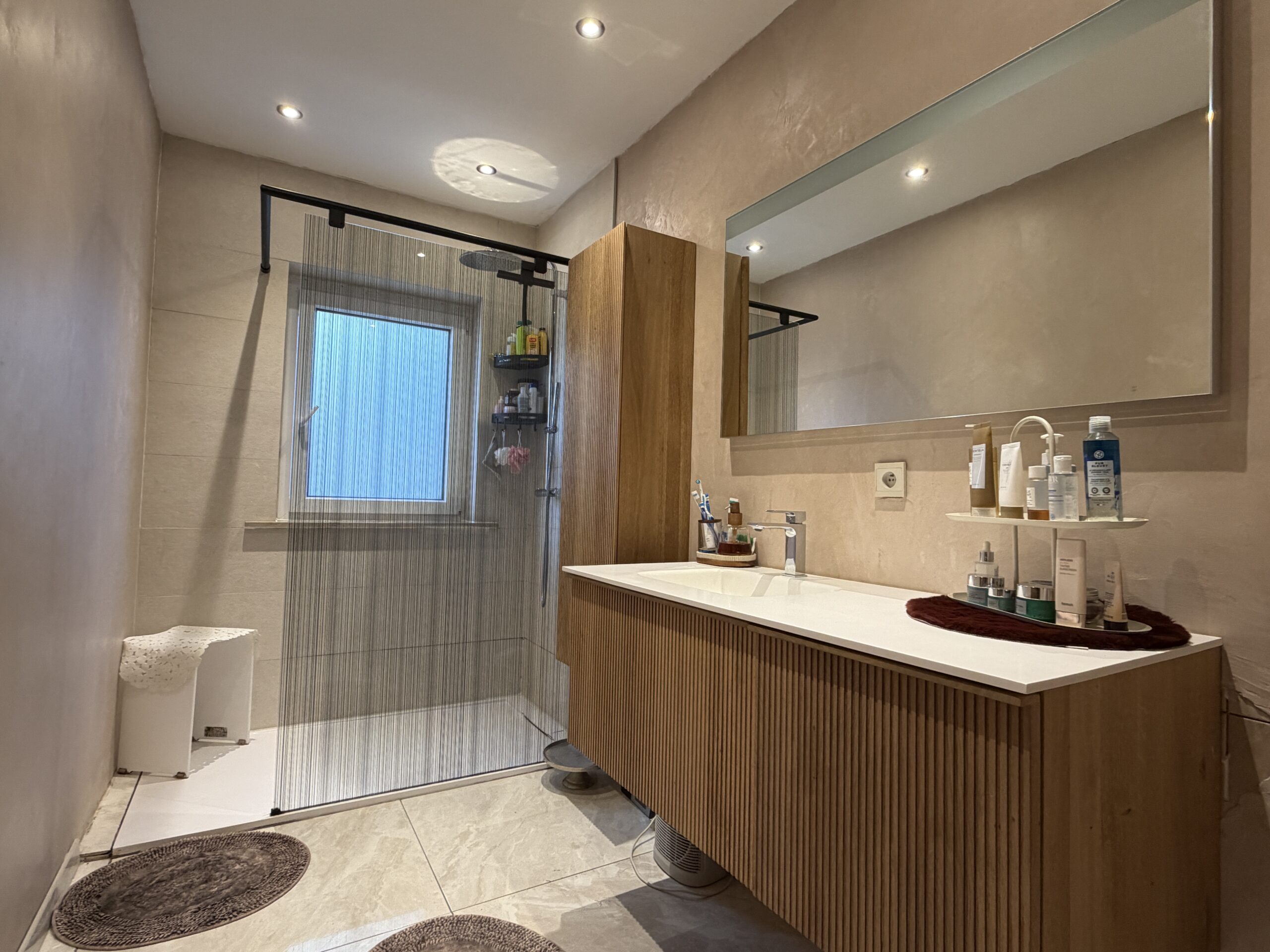 • Belle salle de douche avec douche italienne