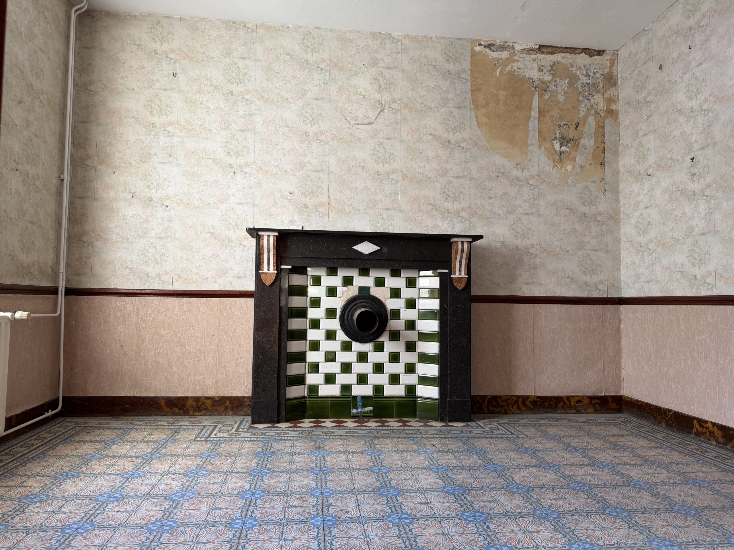 • Agréable salon avec jolis carrelages anciens